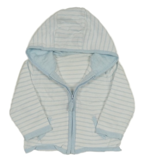 Bielo-svetlomodrý pruhovaný prepínaci sveter s kapucňou Mothercare