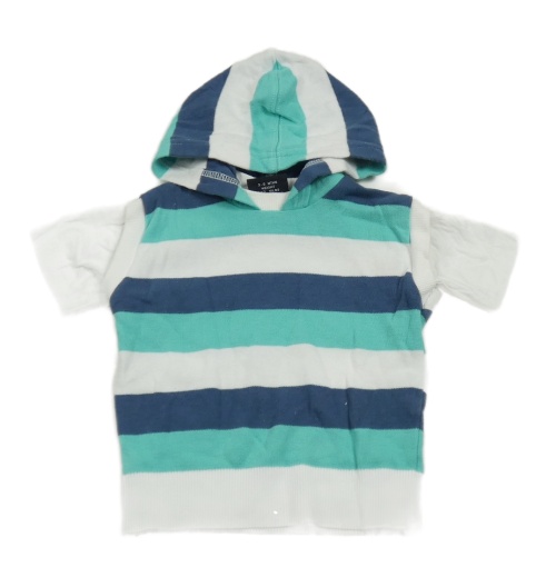 Bielo-modro-zelená pruhovaná vesta s kapucňou
