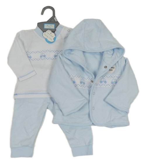 Nové - 2set - Světlemodro-biela zateplená prepínaci mikina s autami a kapucí + overal