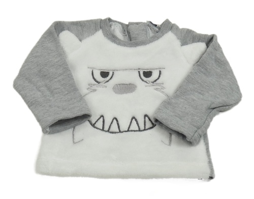 Bielo-sivá mikina s plyšovým prvkem a príšerkou