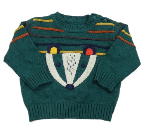 Tmavozelený pruhovaný sveter s jezevcem Nutmeg
