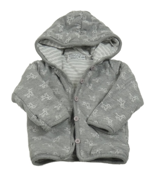 Sivá melírovaná zateplená prepínaci mikina s krávami a kapucňou Dirkje