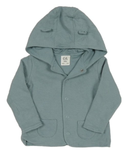 Modrošedá rebrovaná prepínaci podšitá mikina s kapucňou s uškami C&A