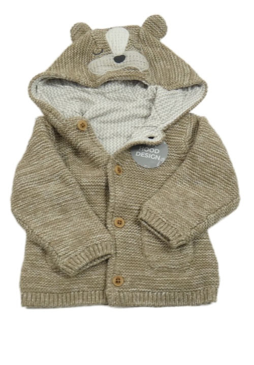 Nové - Hnedý melírovaný podšitý prepínaci sveter s -kapucí medvěď M&S