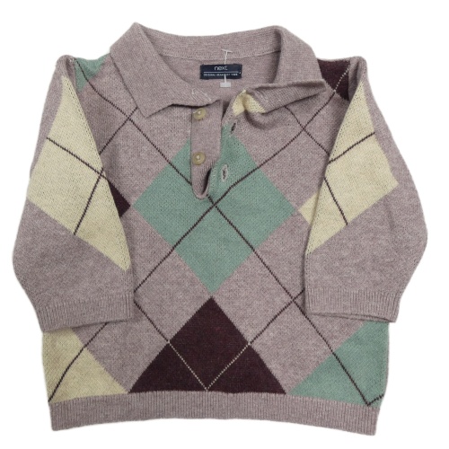 Lila-zeleno-smetanovo-vínový károvaný sveter s golierikom Next