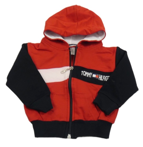 Červeno-čierno-svetloružová prepínaci mikina s logem Tommy Hilfiger