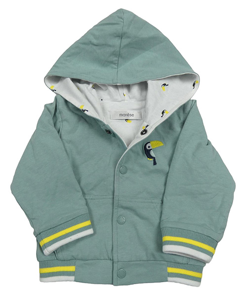 Zelenošedá podšitá prepínaci mikina s tukanom a kapucňou