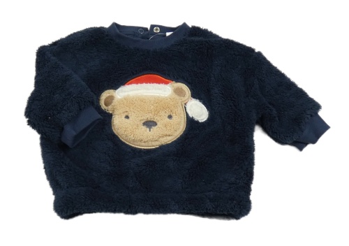 Tmavomodrá chlpatá mikina s medvěďom Next
