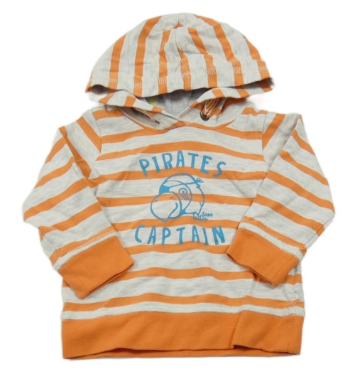 Sivo-oranžová pruhovaná mikina s obrázkom a kapucňou Tom Tailor