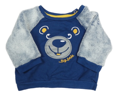 Modro-biela mikina s medvěďom a chlpatymi rukávy ERgee