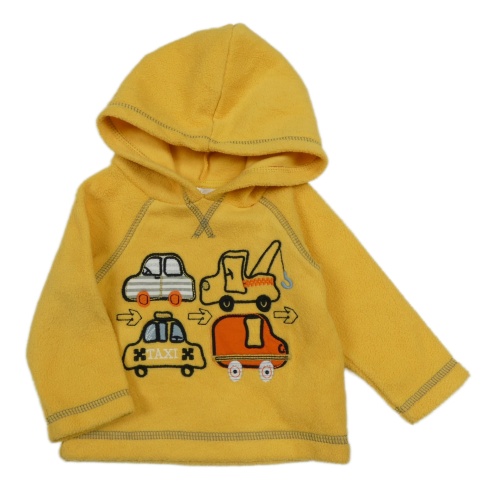 Tmavožltá fleecová mikina s autami a žeriavom a kapucňou M&Co