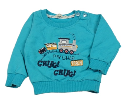 Svetlomodrá mikina s vlakem a nápismi