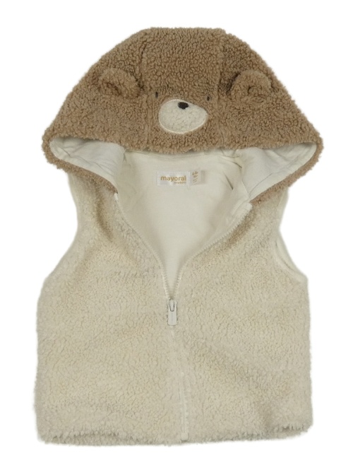Smetanovo-hnedá huňatá podšitá vesta s kapucňou Mayoral