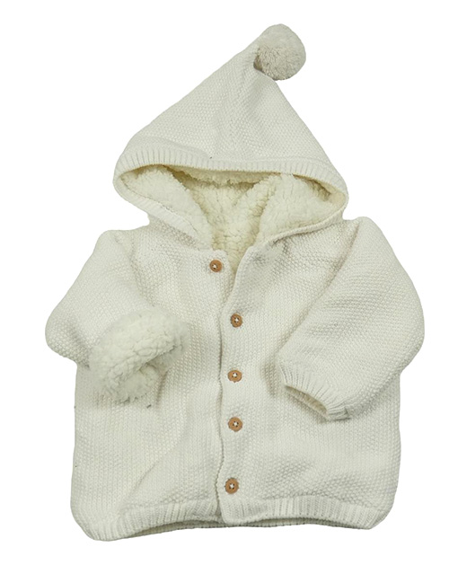 Biely prepínaci zateplený sveter s kapucňou s brmbolcom Matalan