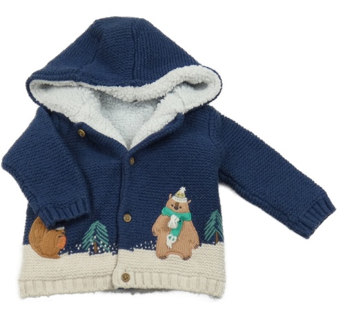 Tmavomodrý prepínaci zateplený sveter so zvieratkami a kapucňou M&S