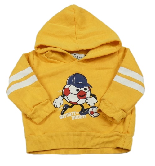 Horčicová mikina s loptou a pruhmi a kapucňou
