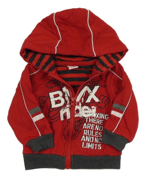 Červeno-tmavosivá prepínaci mikina s motorkou a nápismi a kapucňou