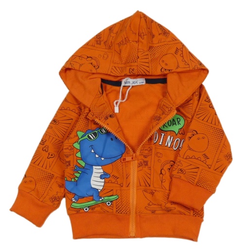 Nové - Oranžová prepínaci mikina s dinosaurom a kapucňou