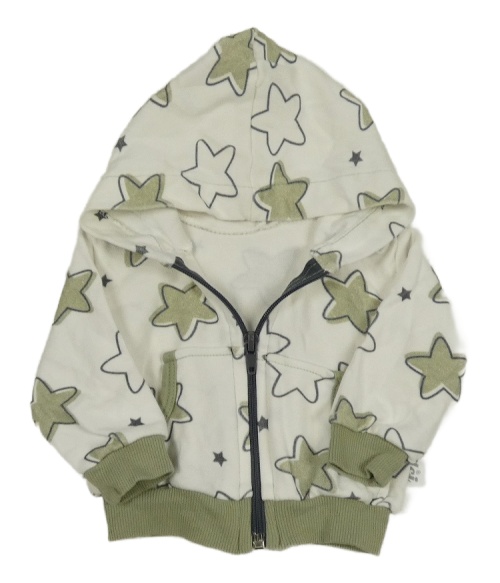 Bílo-khaki prepínaci mikina s hviezdičkami a kapucňou