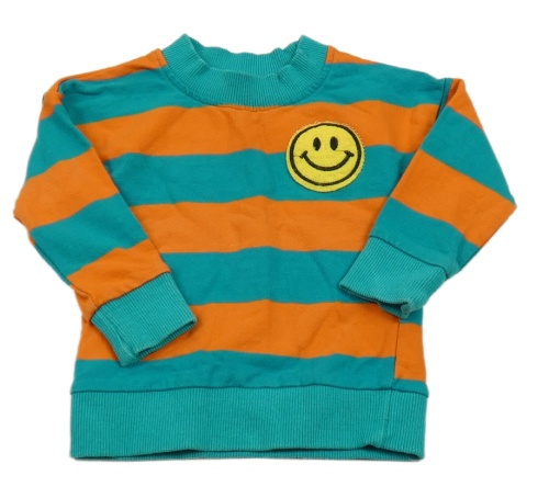 Tyrkysovo-oranžová pruhovaná mikina so smajlíkom