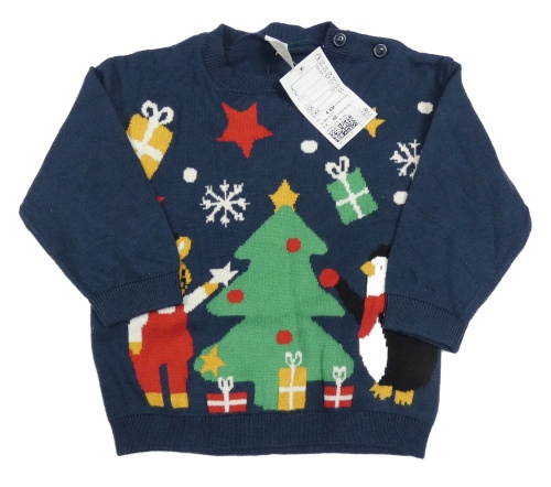 Nové - tmavomodrý vianočný sveter so stromčekom a medvedíkom a tučňáčkem H&M