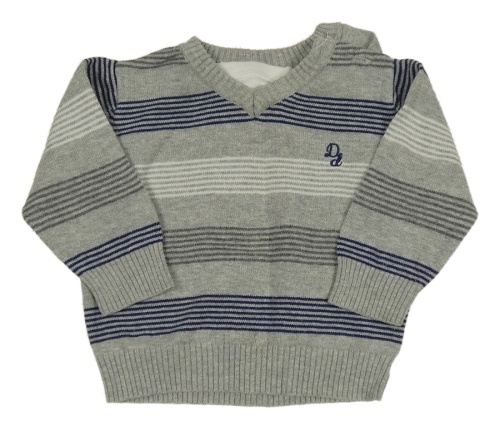 Sivo-tmavomodro/šedo-biely pruhovaný melírovaný sveter s s písmenky C&A