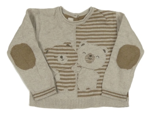 Béžovo-hnedý sveter s medveďmi a pruhmi Chicco