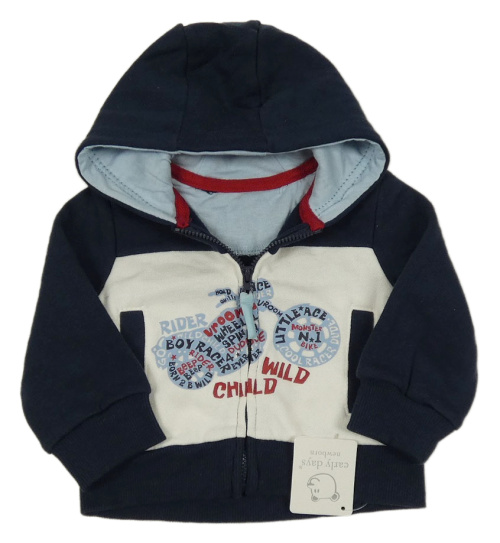 Nové - Tmavomodro-biela prepínaci mikina s motorkou a kapucňou Early Days