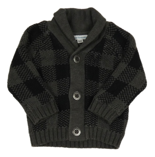 Tmavošedo-čierny kockovaný podšitý prepínaci sveter Vertbaudet