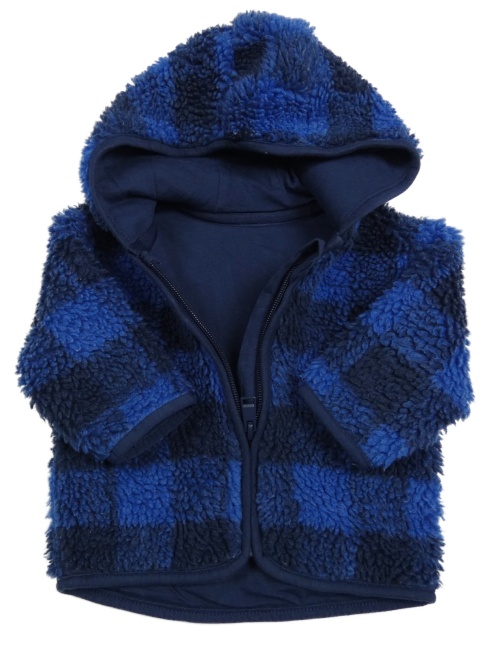 Tmavomodrá kockovaná huňatá podšitá prepínaci mikina s kapucňou M&S