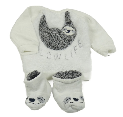 2set- biela chlupato/sametová mikina s lenochodem+ cápačky