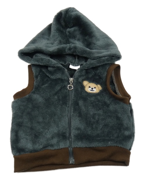 Tmavošedo-hnedá chlpatá prepínaci vesta s medvěďom a kapucňou