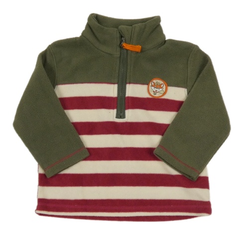 Kaki-béžovo-vínová fleecová mikina s pruhmi a nášivkou Ergee