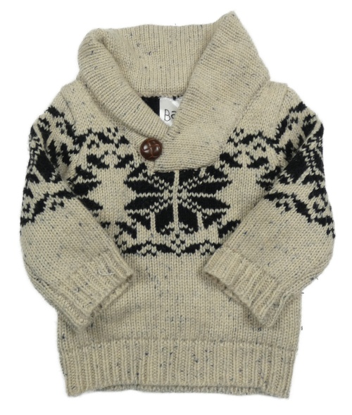 Béžovo-čierny vzorovaný sveter s golierikom