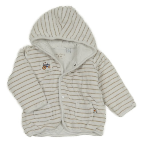 Bielo-béžová pruhovaná zamatová zateplená mikina s nášivkou a kapucňou Bob der Bär