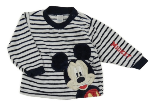 Bielo-tmavomodrá pruhovaná zamatová mikina s Mickeym C&A