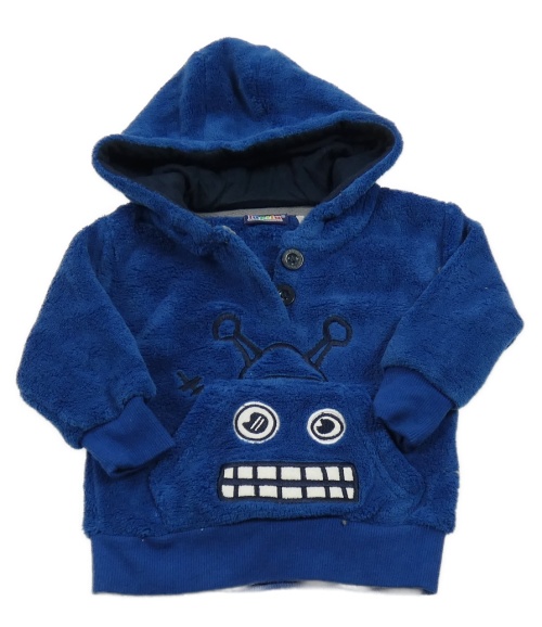Zafírová plyšová mikina s príšerkou a vreckom a kapucňou lupilu