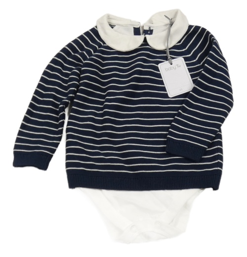 Nové - Tmavomodro-biely pruhovaný sveter so všitým body Tu