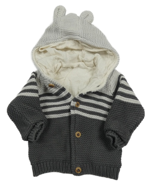 Bielo-sivý pruhovaný podšitý prepínaci sveter s kapucňou M&S