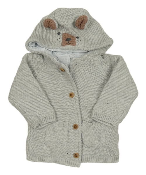 Sivý prepínaci podšitý sveter s kapucí - medvěď