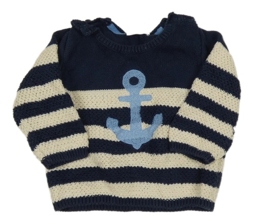 Tmavomodro-smotanový pruhovaný sveter s kotvou Next