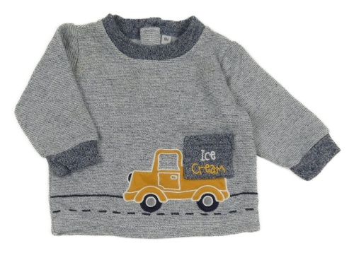 Tmavomodro-biela melírovaná tepláková mikina s nákladním autom a vreckom