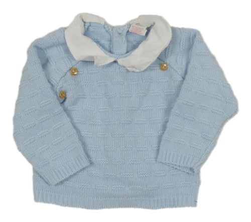 Svetlomodrý vzorovaný pletený sveter s golierikom