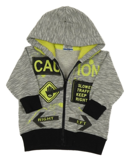 Sivá melírovaná prepínaci mikina s nápisom a kapucňou
