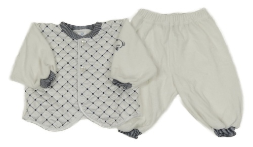 2Set - Bielo-tmavomodrá károvaná sametovo/saténová prepínaci mikina + tepláky s pruhmi