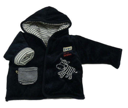 Tmavomodrá zamatová zateplená prepínaci mikina so zebrou a kapucňou C&A