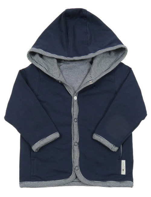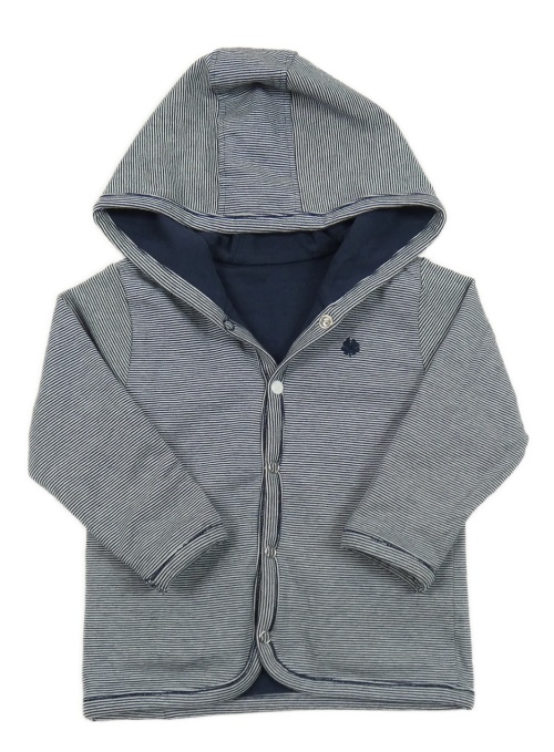 Tmavomodro-biela pruhovaná prepínaci obojstranná mikina s kapucňou
