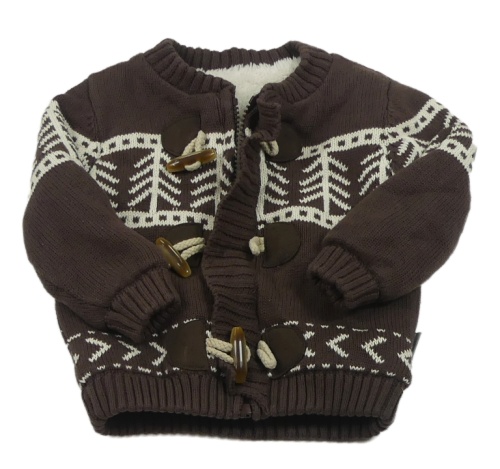Hnedo-biely zateplený prepínaci sveter so stromky Nutmeg