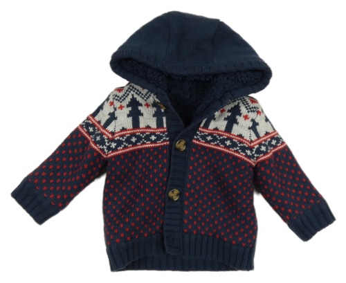 Tmavomodrý vzorovaný zateplený prepínaci sveter s kapucňou George