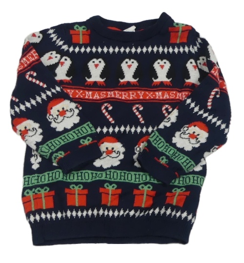 Tmavomodro-červeno-zelený pruhovaný sveter s obrázkami H&M